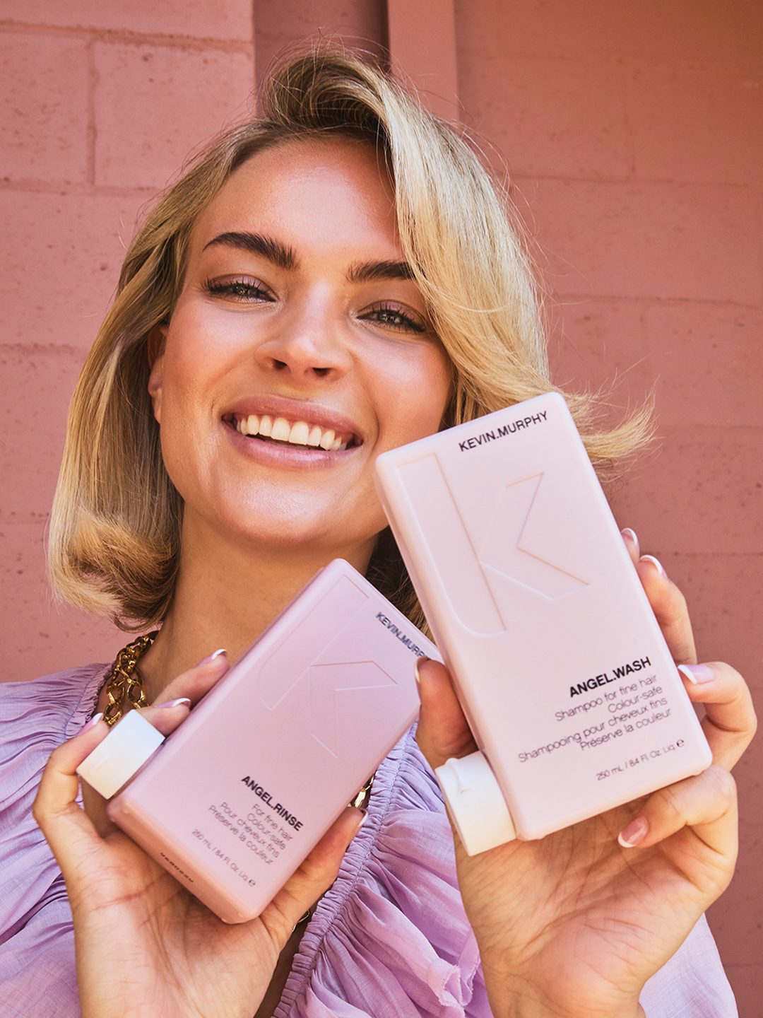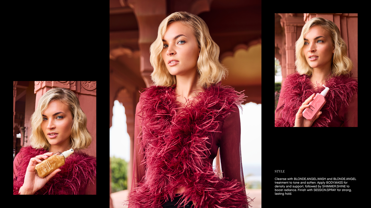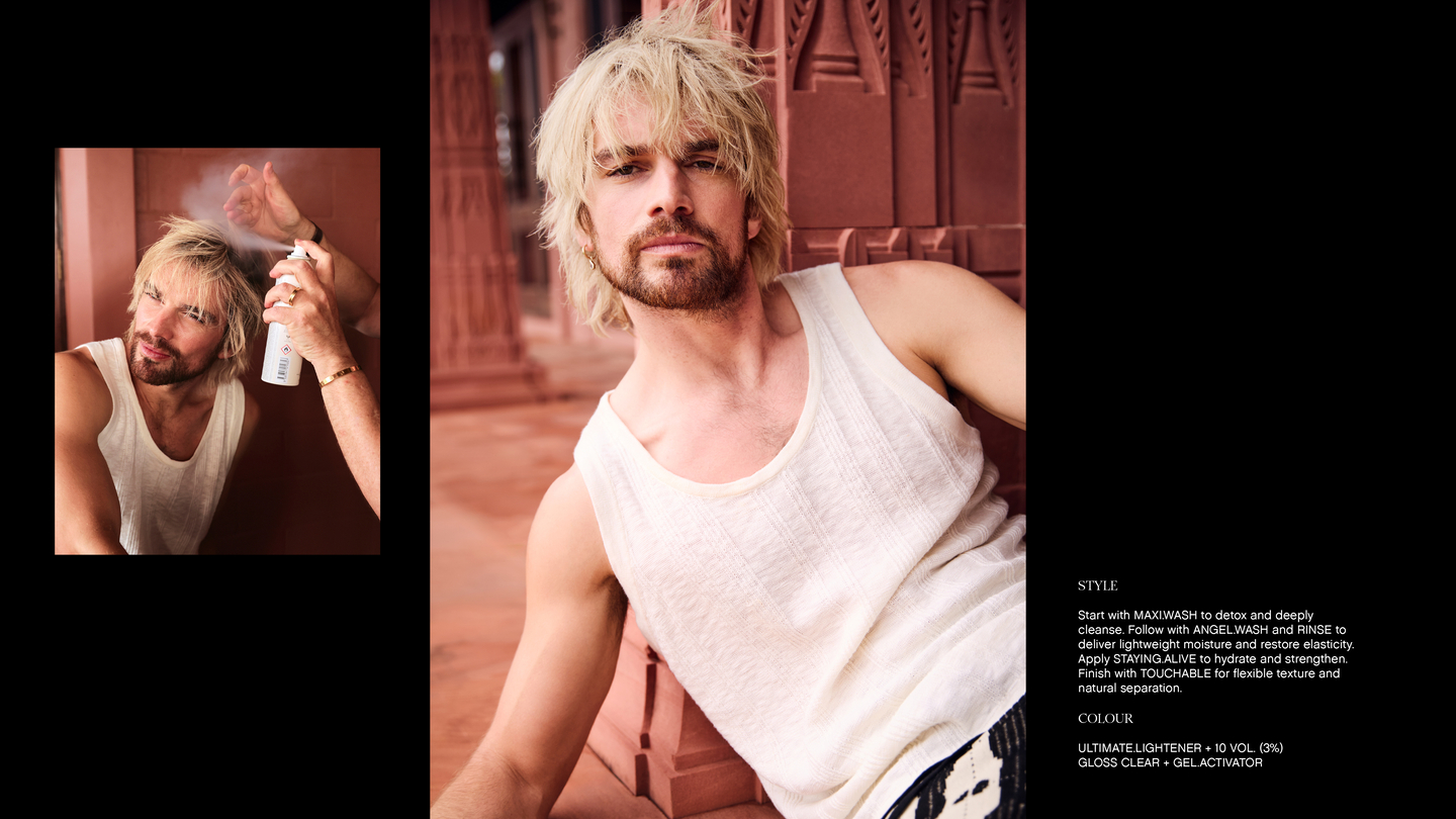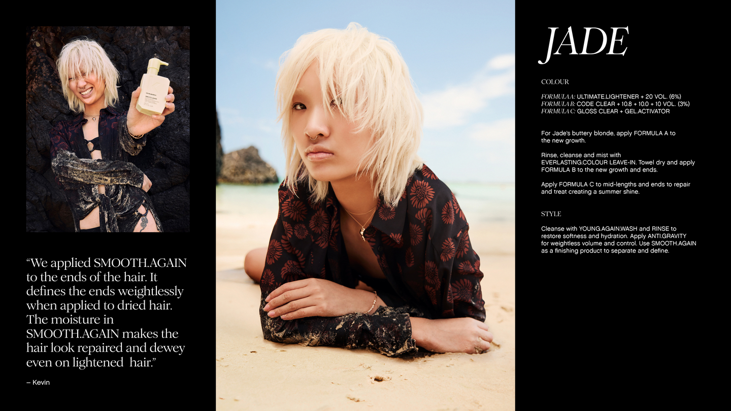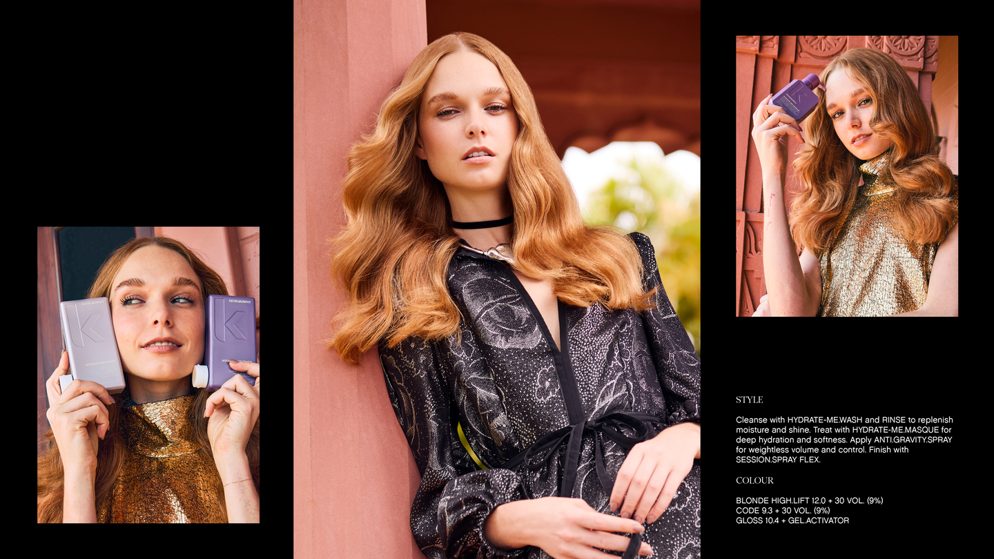 KEVIN.MURPHY+BLONDE features six high lift shades designed to achieve ultra-light blonde results with warm, cool, and neutral options. This gentle yet high-performance solution lightens hair up to five levels for optimum lift and neutralisation, all while protecting the hair’s integrity, thanks to the KM.ARGAN-SPHERE breakthrough technology. The optimised combination of colour pigments offer a variety of blonde possibilities, giving license to shine brightly and brilliantly.