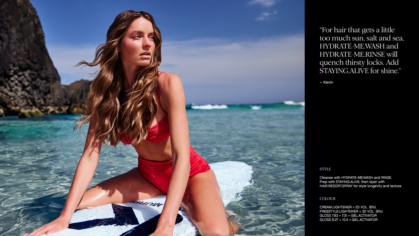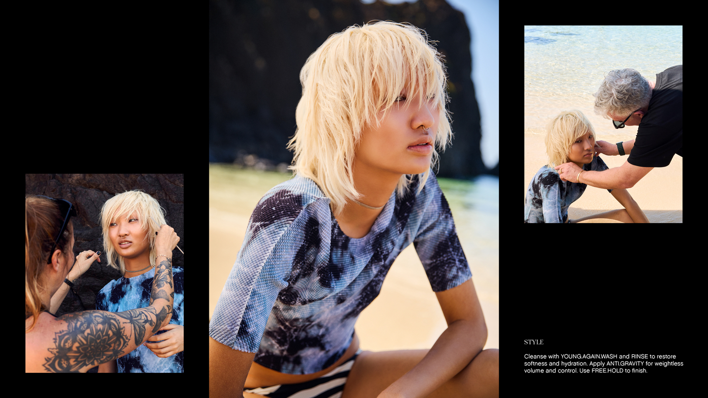 Dreamtime Beach symbolises transformation, a place for hellos and goodbyes, Dreamtime symbolises our island home, and vast opportunities extend as far as the eye can see. It is no mistake that the campaign has us back to our roots, celebrating hair, people and their lifestyles. Hair is about self-expression we are not seeking perfection anymore. They are not afraid to break rules, be distinctive, and do it differentlyDreamtime Beach is a lively hub of activity, entertainment, and play. Water is cherished as a living energy with its own spirit; we are responsible for protecting and caring for it.