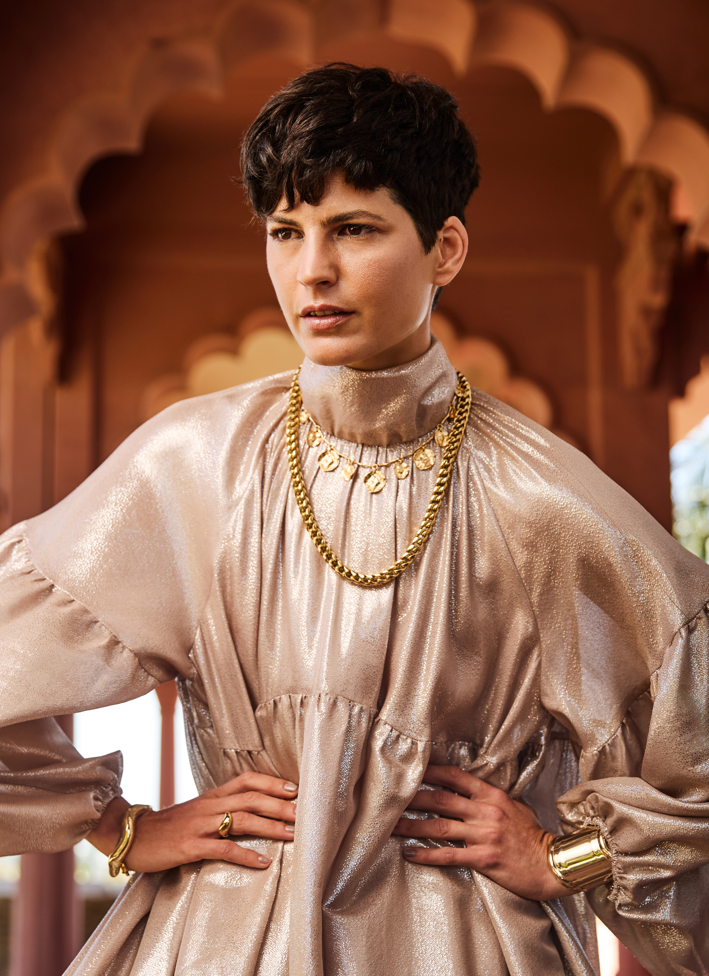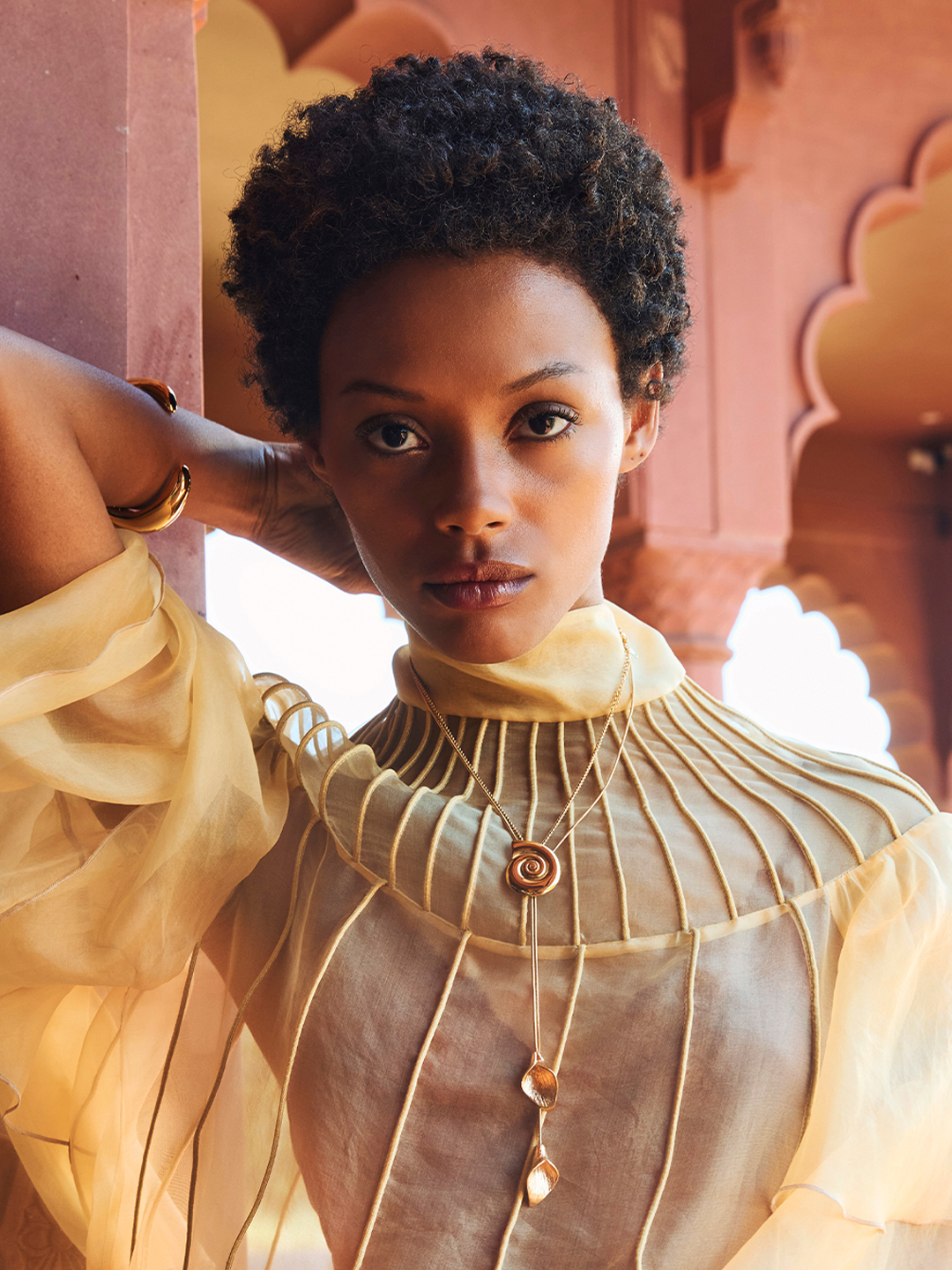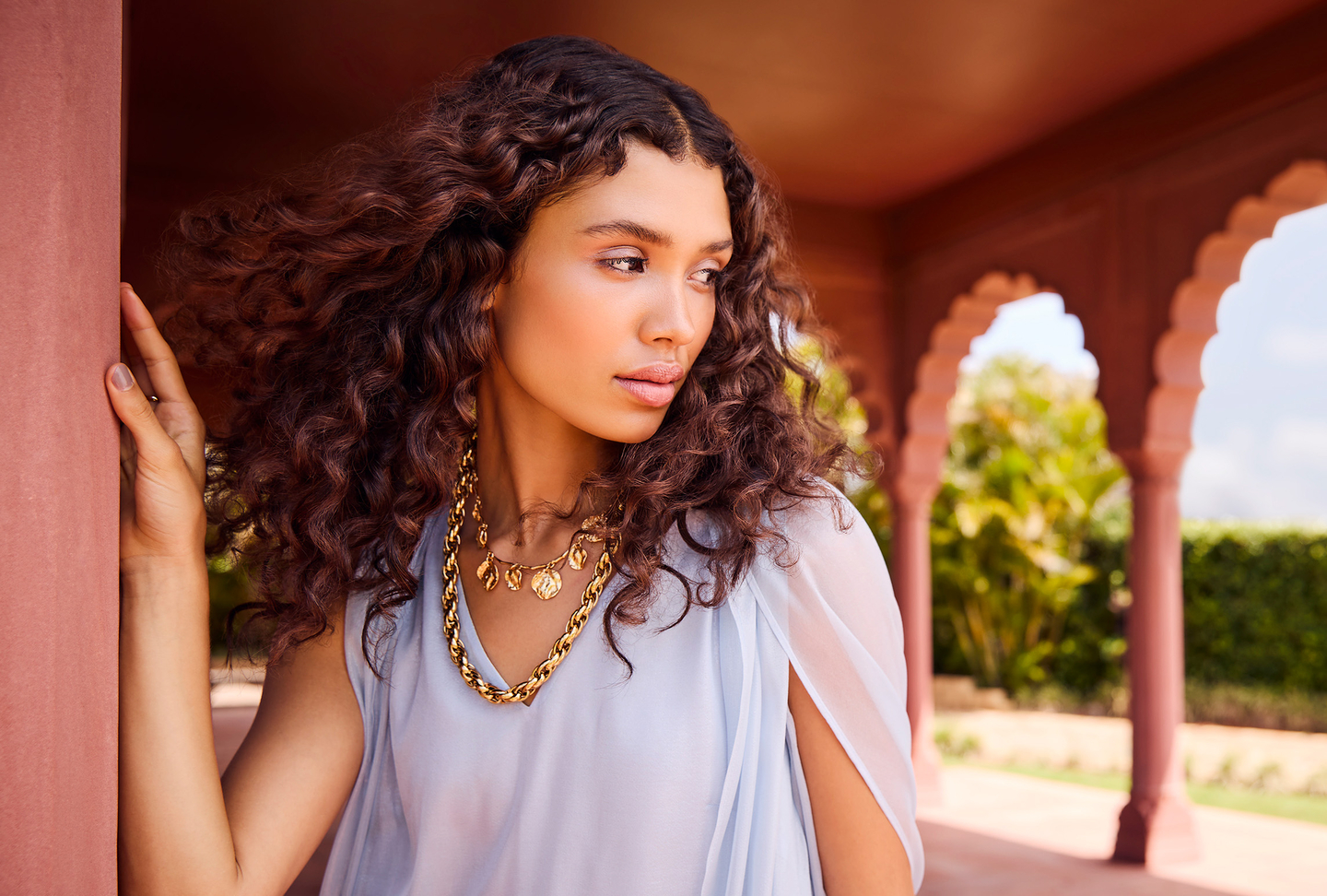 Long caftans, fabrics, and self-assured hair mix luxury and nonchalance to embody the quintessence of bohemian chic. Trendsetters who see hair as an expression of individuality. A grand palace made from love and as original as the people in it.